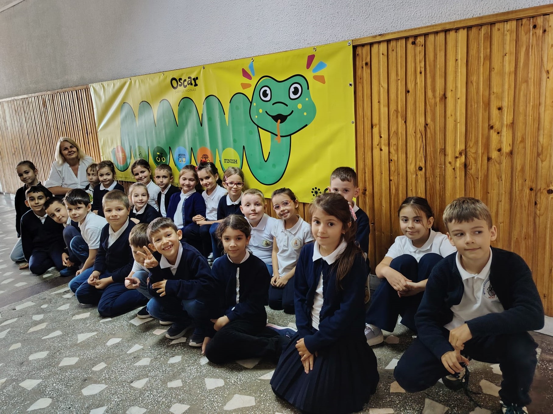 În fiecare oraș, școlile participante au strâns buline colorate pe bannerul cu șarpele OSCAR ori de câte ori elevii au ales o variantă de transport sustenabil spre școală.
