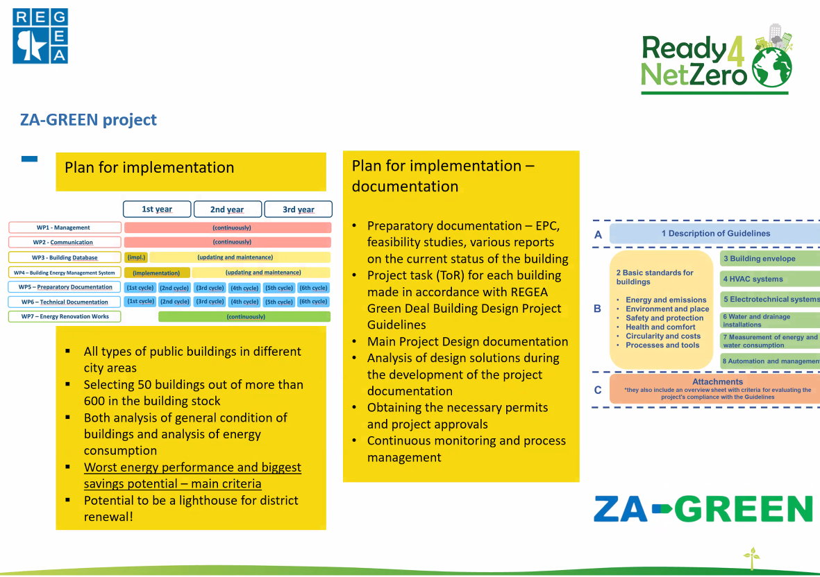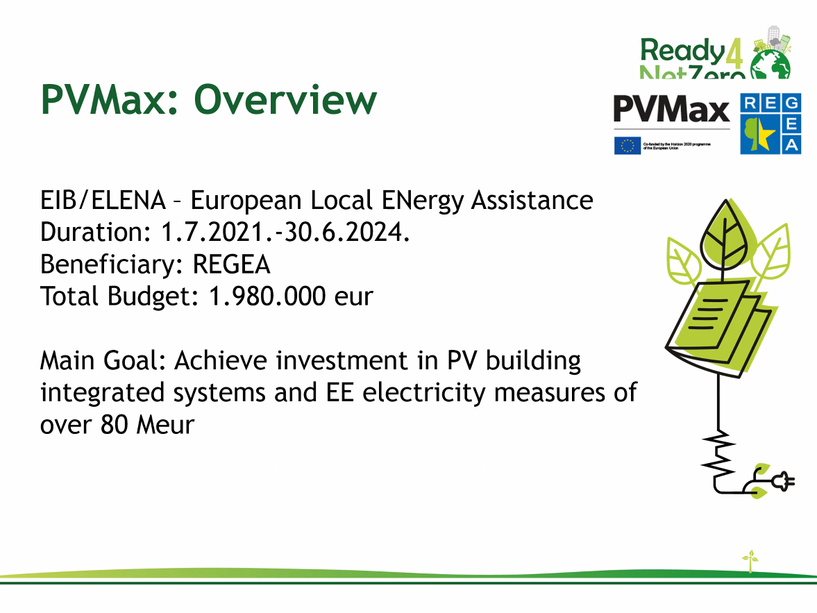 Au fost prezentate 4 proiecte majore coordonate de REGEA, cu detalii privind țintele și obiectivele, bugetul și finanțarea, provocările, planurile de acțiune și rezultatele. New Light: proiect finalizat, axat pe reconstrucția iluminatului public în zonele Zagreb & Krapina-Zagorje; RePubLEEc: proiect finalizat, axat pe reabilitarea iluminatului stradal din Zagreb; PV Max: proiect încă în curs de implementare până în 2024 pentru sectoarele public și privat din Croația; Za-Green: proiect demarat în mai 2023, care implică orașul Zagreb și vizează investiții majore în renovarea clădirilor și instalarea de panouri fotovoltaice.